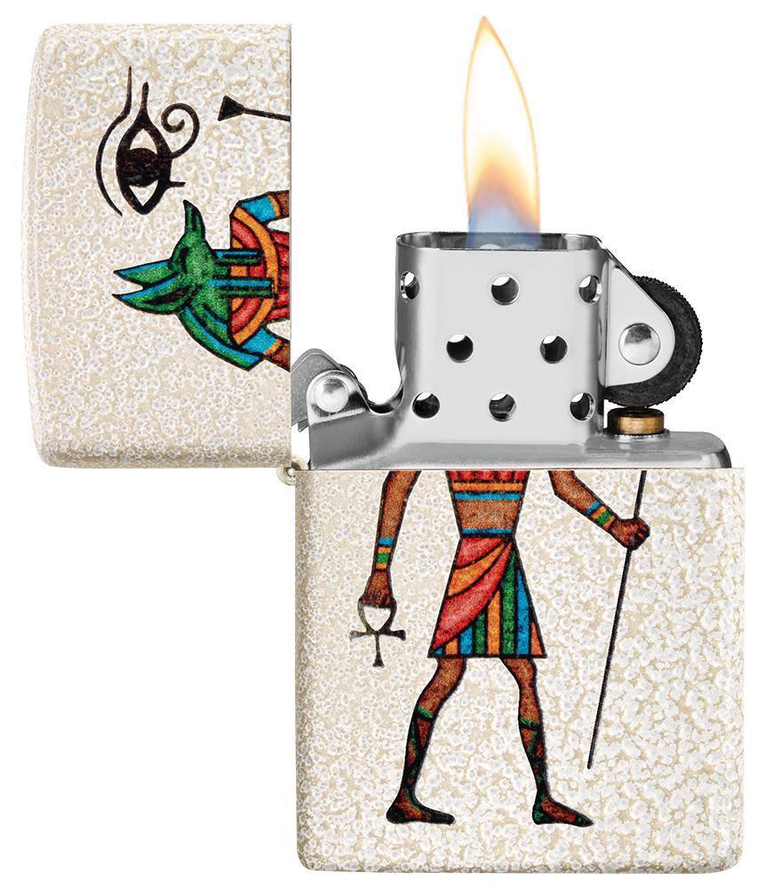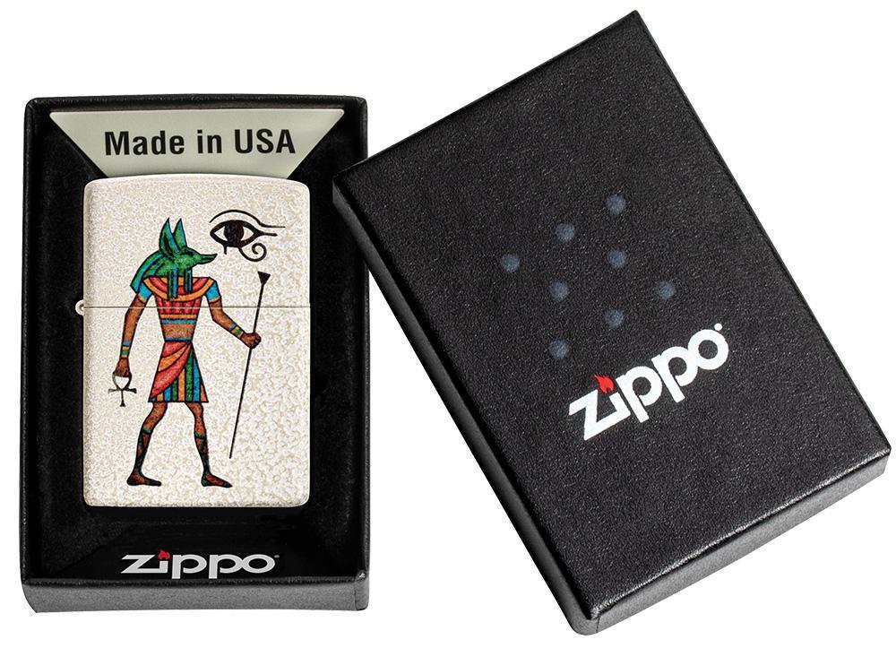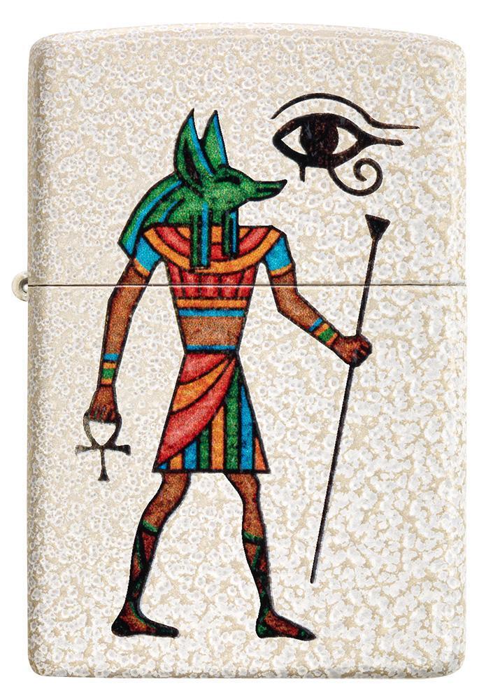 Anubis is the Ancient Egyptian god of mummification and the afterlife, as well as the patron god of lost souls and the helpless. Colour imaged on a Mercury Glass lighter is the Anubis, represented by a jackal or the figure of a man with the head of a jackal. The Eye of Horus is set on to this design to bring you a powerful symbol of protection and good health to carry with you everywhere you go. Comes packaged in a gift box. For optimal performance fill with Zippo lighter fuel.