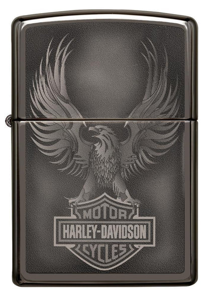 Using the imaging process, an eagle soars across this Black Ice ® case, once again capturing the historic Harley-Davidson ® Bar & Shield logo. Comes packaged in a decorative box. For optimal performance, fill with Zippo lighter fuel.