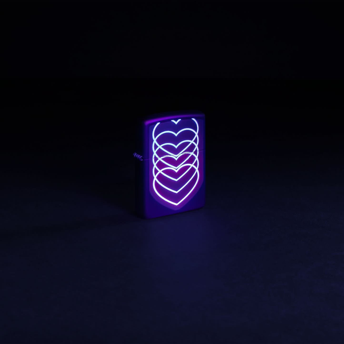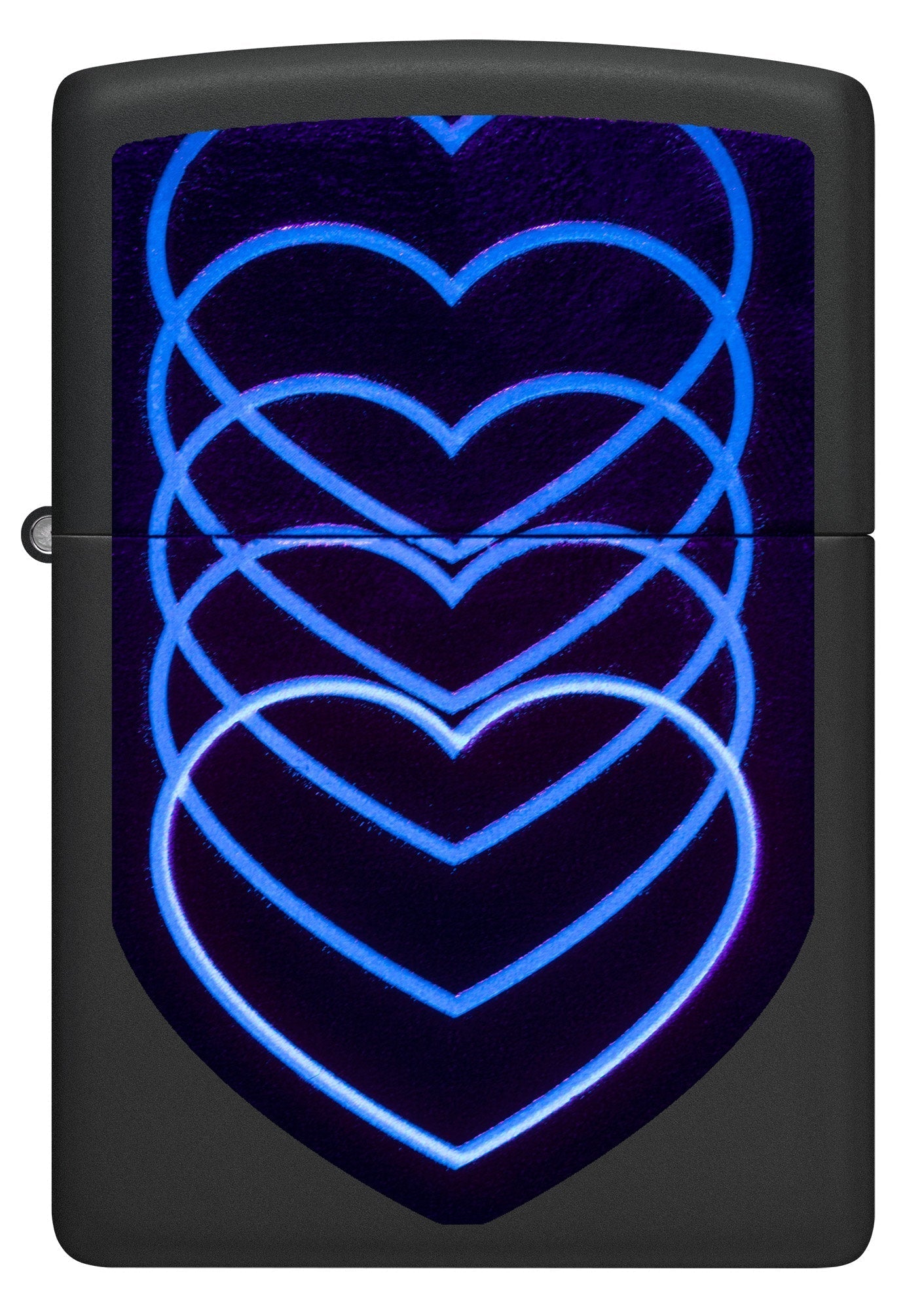 Radiate love wherever you go with this high-impact Black Matte lighter. A glowing heart emits its power in the minimalist Color Image design, which shines under ultraviolet light thanks to our Black Light process. Comes packaged in a gift box. For optimal performance, fill with Zippo lighter fuel.