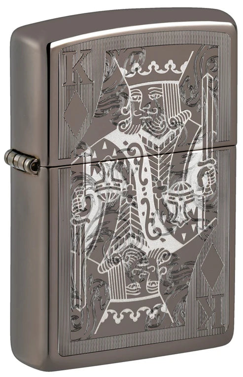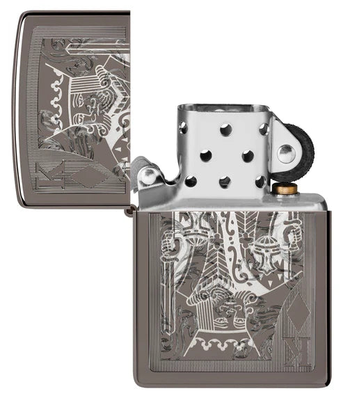 Hagyd, hogy ez a klasszikus Black Ice® öngyújtó uralja a gyűjteményedet. A Gyémántok Királyának bonyolult motívuma, amelyet automatizált és lézergravírozási eljárásainkkal domborítunk a sima felületre, kifinomult mélységet és kontrasztot kölcsönöz.