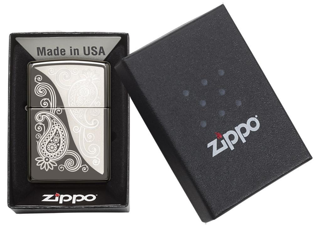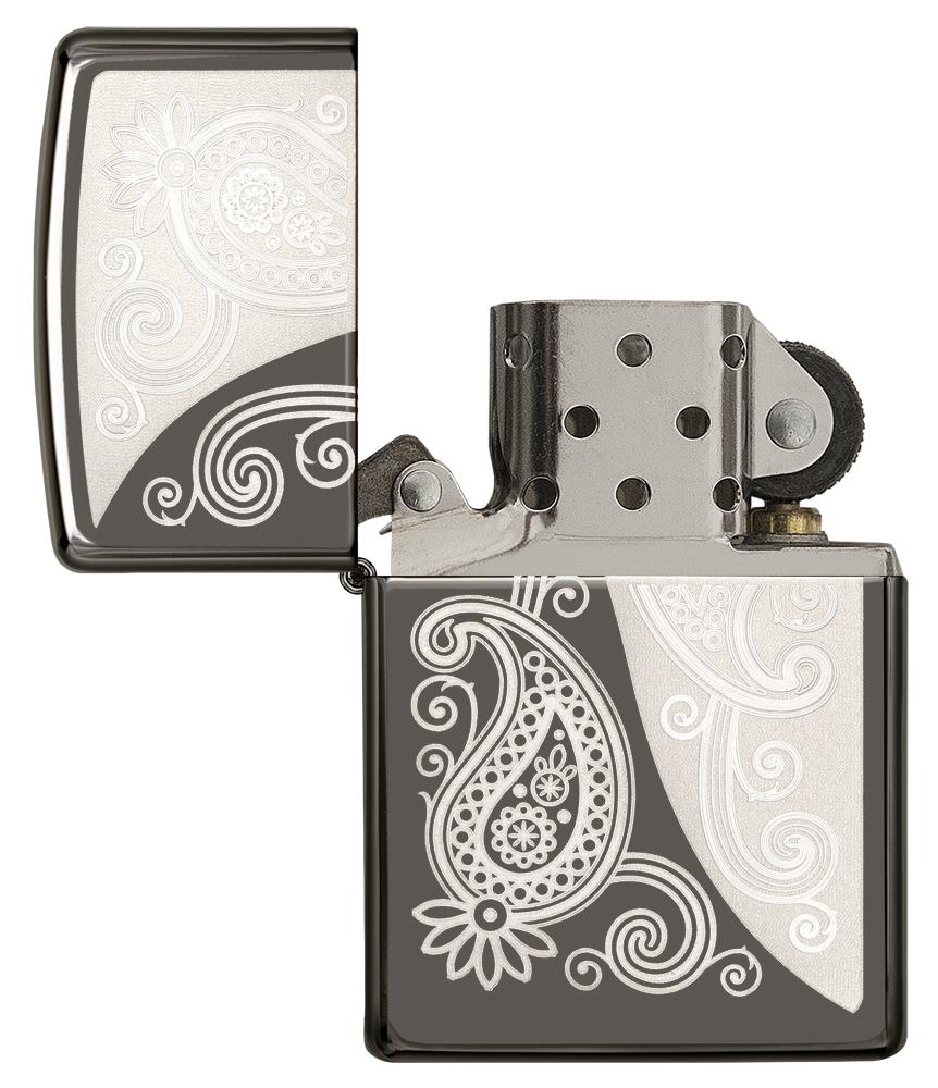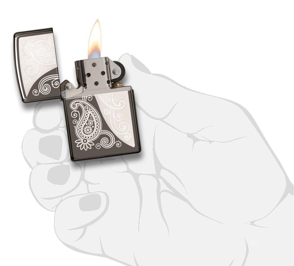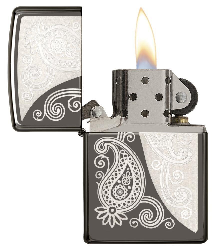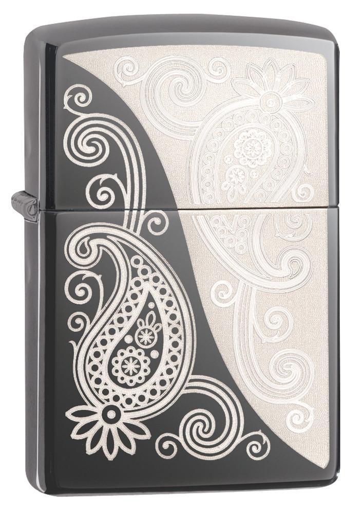 This Black Ice® lighter features a charming paisley design. This engraved model is the perfect blend of classy and chic. Comes packaged in a gift box. For optimal performance, fill with Zippo lighter fuel.