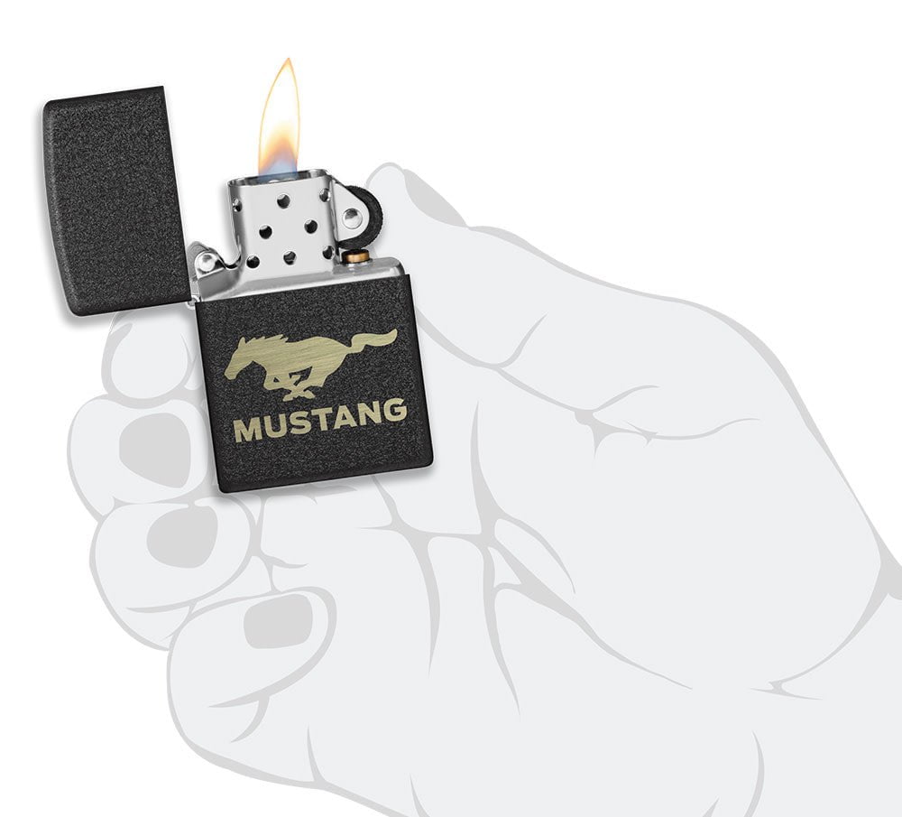 Mutassa meg Mustang büszkeségét ezzel a Black Crackle ® öngyújtóval. Az összetéveszthetetlen Mustang logót lézerrel gravírozták az öngyújtó felületére, amely alatt fényűző sárgaréz tónusok jelennek meg. Díszdobozba csomagolva érkezik. Az optimális teljesítmény érdekében töltse fel Zippo öngyújtó üzemanyaggal.