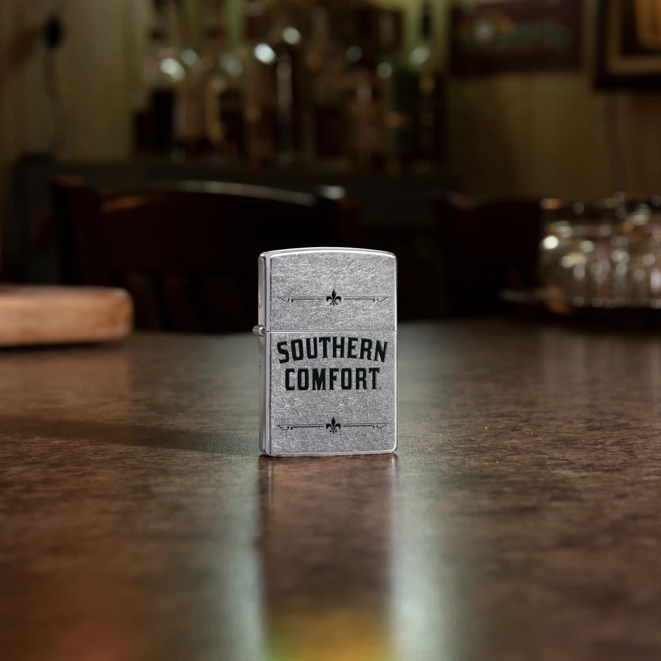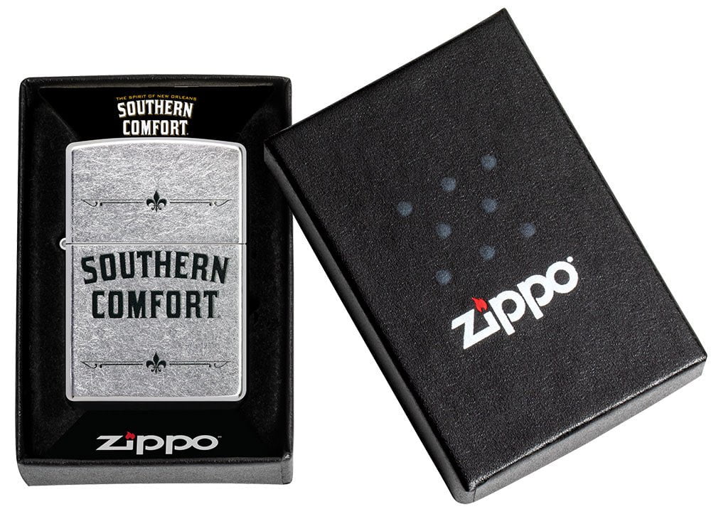 A Southern Comfort ® egyedi receptje különleges amerikai ízvilágot biztosít – amely 150 év után is olyan egyedülálló, mint valaha. Ez a klasszikus Street Chrome™ öngyújtó a Color Image eljárásunknak megfelelően a híres logóval rendelkezik. Díszdobozba csomagolva érkezik. Az optimális teljesítmény érdekében töltse fel Zippo öngyújtó üzemanyaggal.