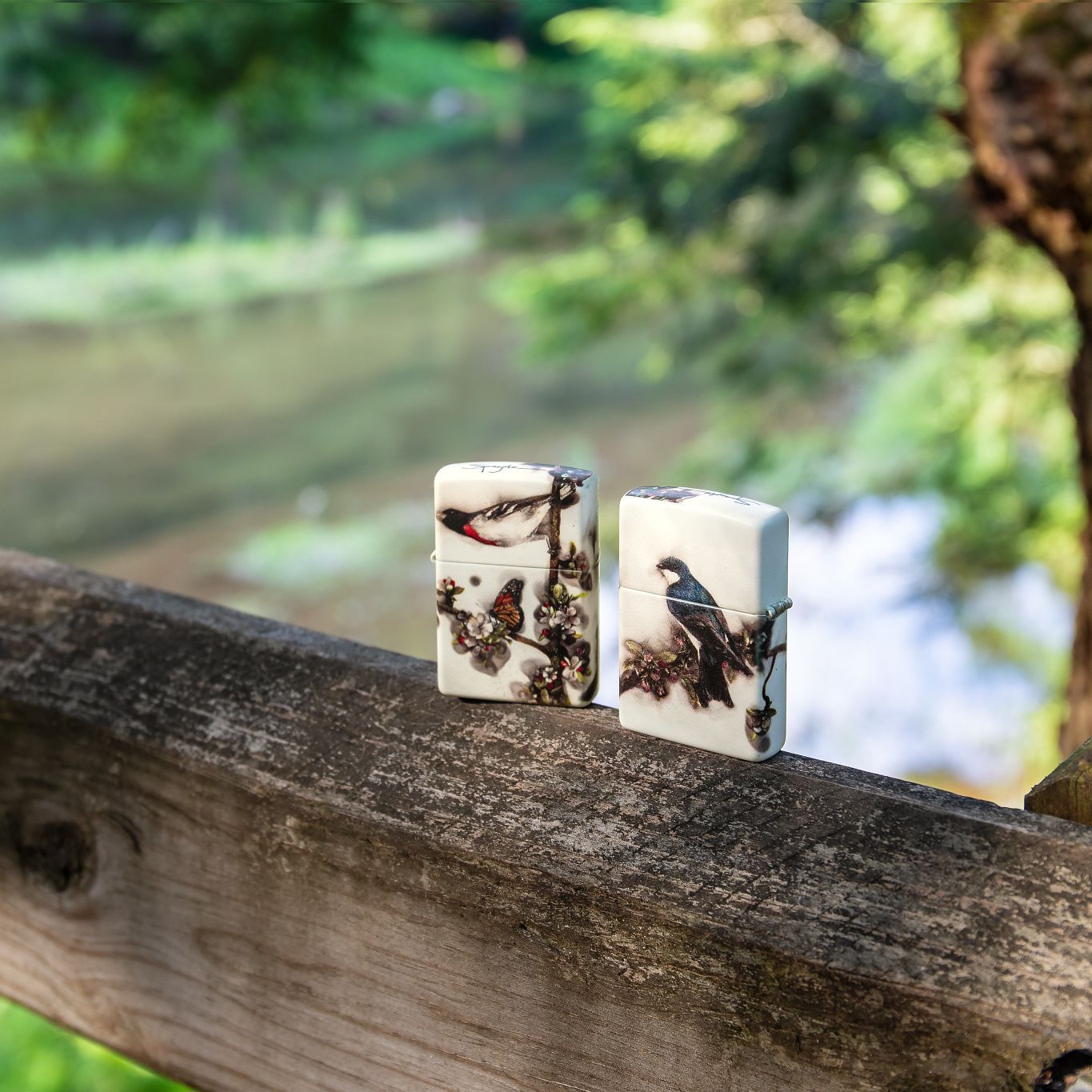 Steven Spazuk tűzművészete elbűvölte a közönséget szerte a világon. Kísérteties képei most egy matt öngyújtó köré fonódnak a Zippo 540 Color eljárása révén, amely új határt jelent Spazuk alkotásainak, amelyek a vásznon táncoló tűzből emelkednek ki. Ez a minta madarakat és gyönyörű uralkodói pillangókat ábrázol az öngyújtót körülvevő ágakon ülve. Díszdobozba csomagolva érkezik. Az optimális teljesítmény érdekében töltse fel Zippo öngyújtó üzemanyaggal.