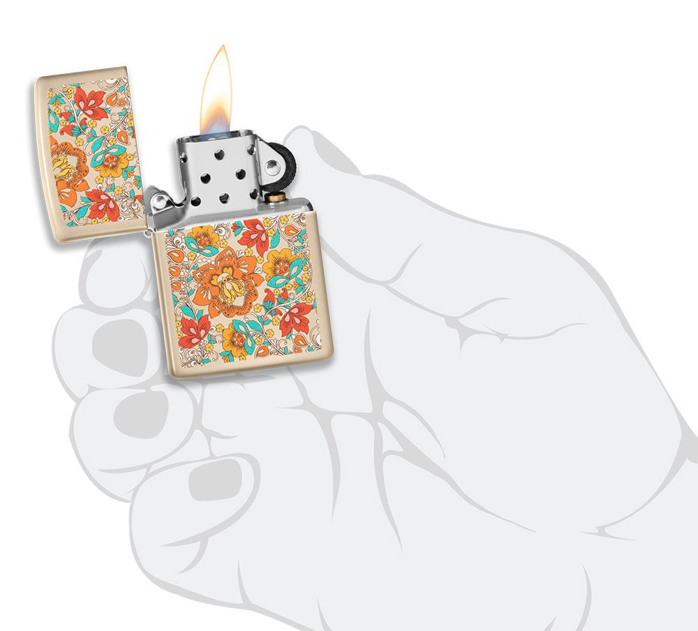 A Flat Sand öngyújtó virágmintája teljesen barázdált. Akár virággyerek, akár nem, értékelni fogja azt a jó hangulatot, amely akkor történik, amikor egy lenyűgöző vintage dizájn találkozik a Color Image eljárásunkkal. Díszdobozba csomagolva érkezik. Az optimális teljesítmény érdekében töltse fel Zippo öngyújtó üzemanyaggal.