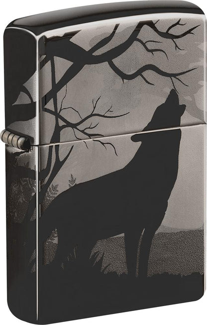 Akár magányos farkas, akár falka része, ez az új farkas öngyújtó minden bizonnyal kielégíti ezt az igényt. Ebben a lenyűgöző jelenetben egy árnyas erdő mélyén egy éjszakába üvöltő farkas sziluettjét találod. Forgasd el az öngyújtót, és találjd egy másik farkast, aki őrt áll a hátulján. Ez a kép teljesen körbejárja a Black Ice ® öngyújtó teljes felületét a Photo Image 360°-os eljárással. Díszdobozba csomagolva érkezik. Az optimális teljesítmény érdekében töltse fel Zippo öngyújtó üzemanyagot .